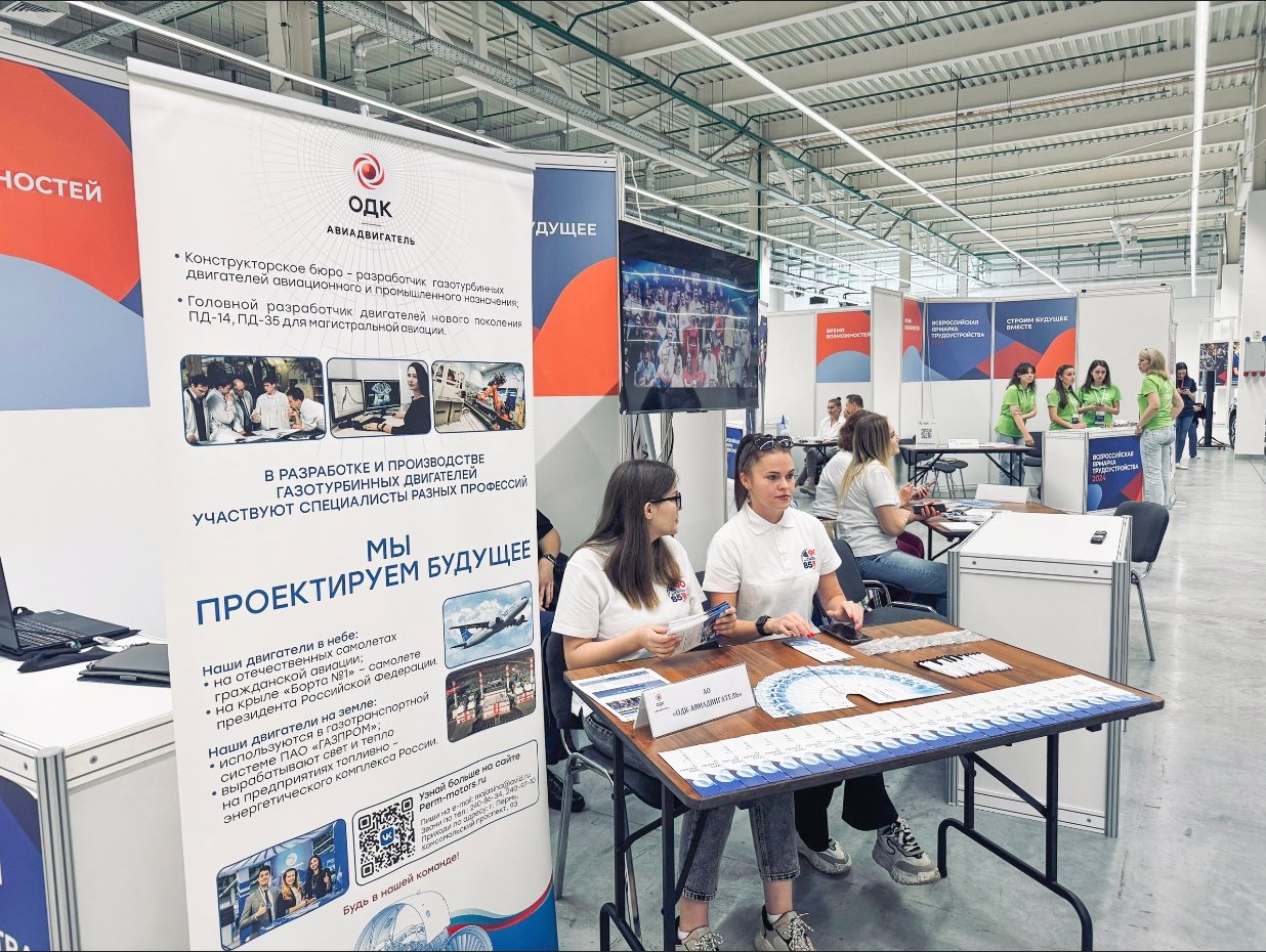 Предприятия ОДК-Авиадвигатель и ОДК-Пермские моторы (входят в Объединенную двигателестроительную корпорацию Госкорпорации Ростех) стали участниками Всероссийской ярмарки трудоустройства 2024 «Работа России. Время возможностей». Специалисты предприятий рассказали посетителям об актуальных вакансиях как для квалифицированных рабочих, так и для выпускников техникумов, колледжей и вузов.На ярмарке трудоустройства, организованной Министерством труда и социальной защиты Российской Федерации, сотрудники кадровой службы ОДК-Авиадвигатель и ОДК-Пермские моторы представили вакансии комплектовщика, слесаря, электромонтера и оператора станков ЧПУ. Также они рассказали о возможности пройти на предприятии обучение перспективным рабочим профессиям с последующим трудоустройством.