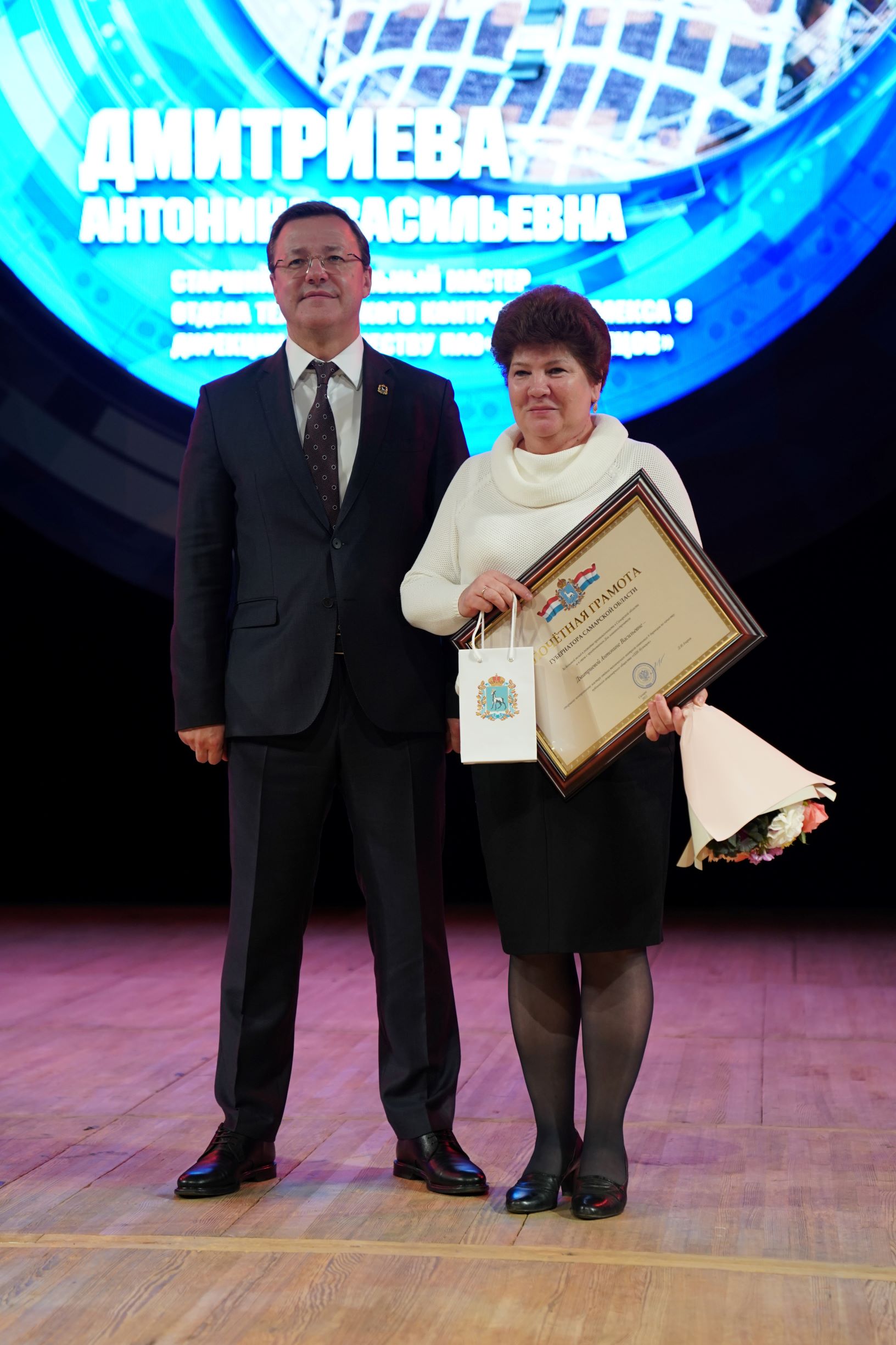 Почетного звания «Заслуженный работник промышленности» удостоена фрезеровщик Анна Султанова, Почетными грамотами Губернатора награждены старший контрольный мастер Антонина Дмитриева и начальник бригады ОКБ Олег Гречишников.