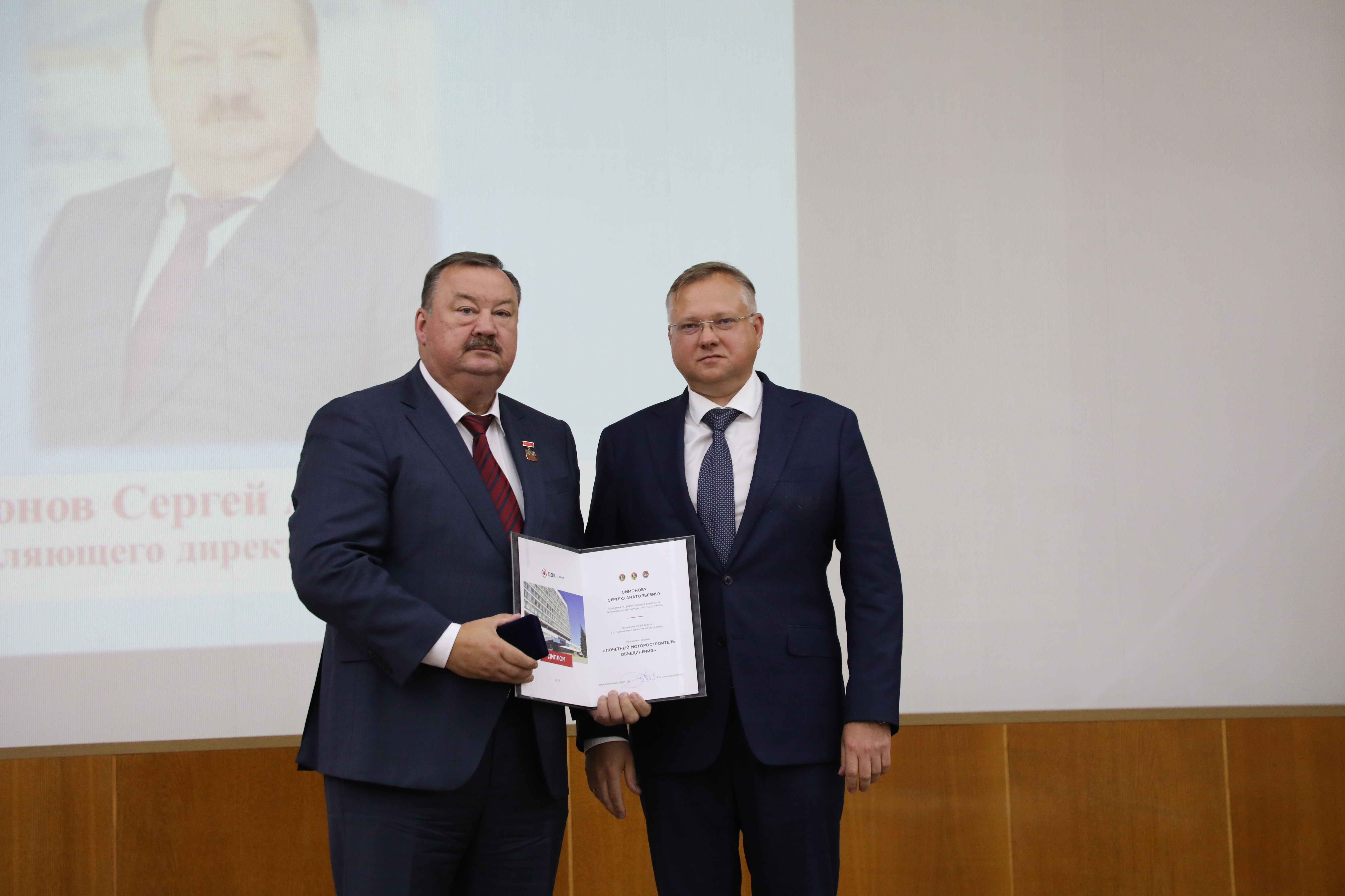 Награждение званием «Почетный моторостроитель ОДК-УМПО» заместителя управляющего директора – технического директора ОДК-УМПО Сергея Симонова