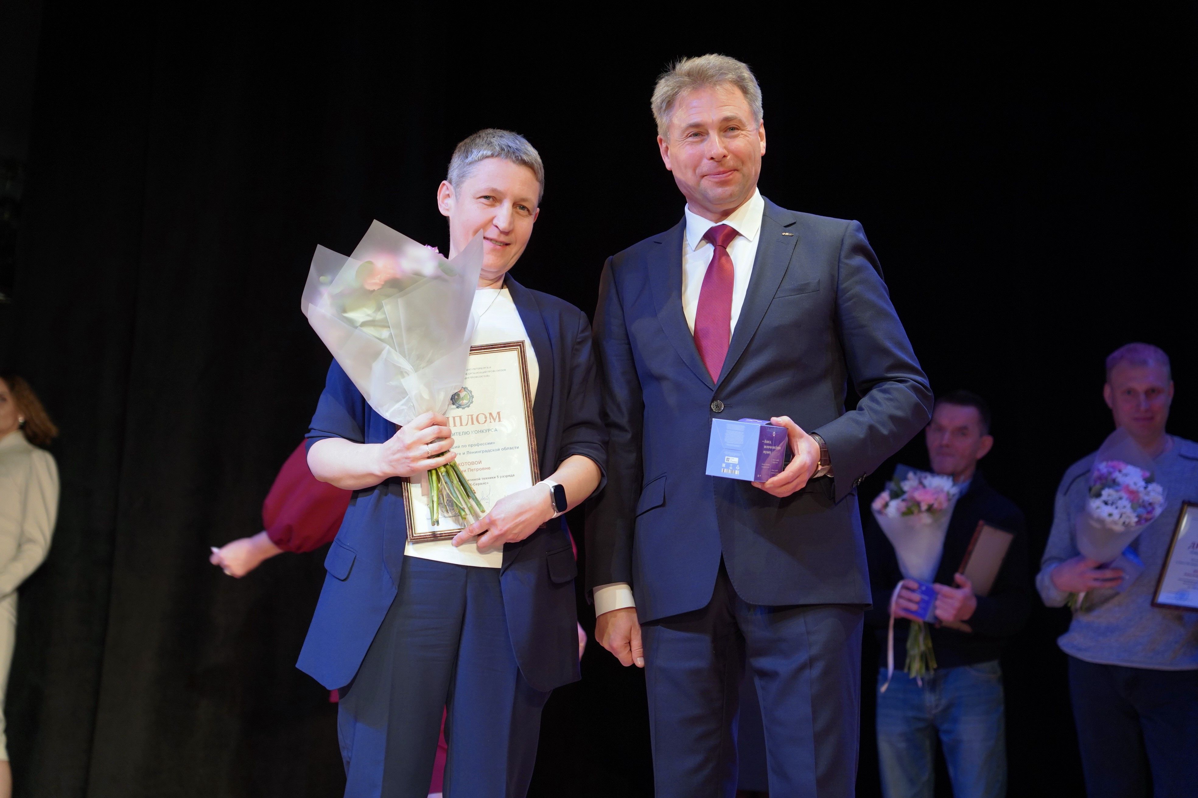 Торжественная церемония награждения победителей ежегодного конкурса «Лучший по профессии» прошла в Выборгском дворце культуры. Мероприятие организовано в рамках празднования Дня профсоюзного работника и 120-летнего юбилея Профсоюзного центра при поддержке Ленинградской Федерации Профсоюзов. Награду сотруднице ОДК-Сервис вручил председатель Ленинградской федерации профсоюзов Александр Голубев.
